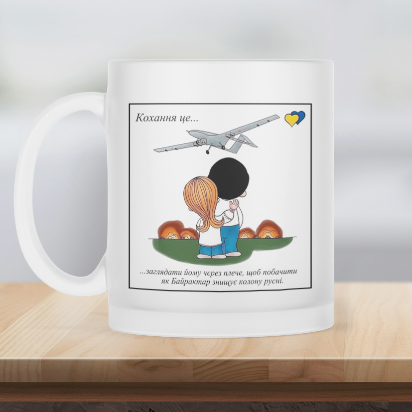 Чашка матова прозора 330 мл Кохання це.. про Байрактар
